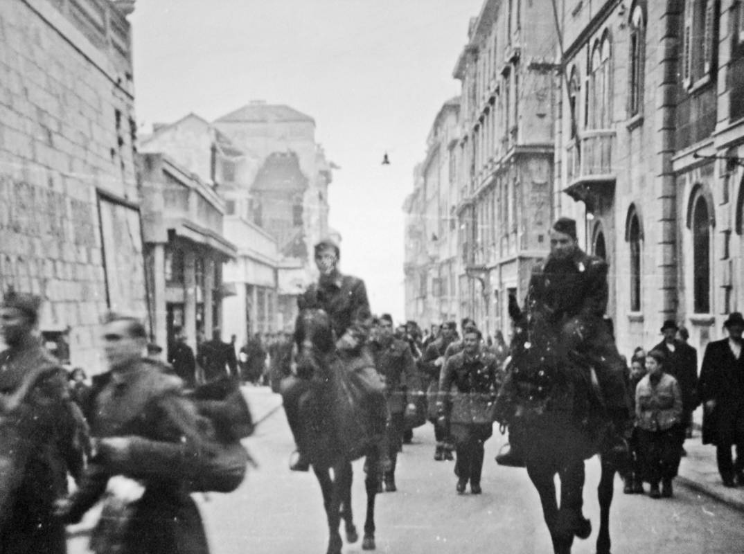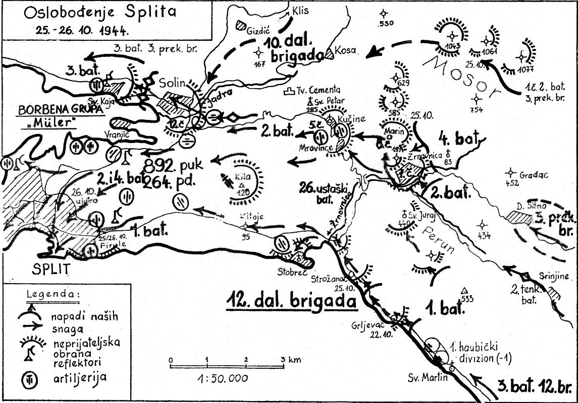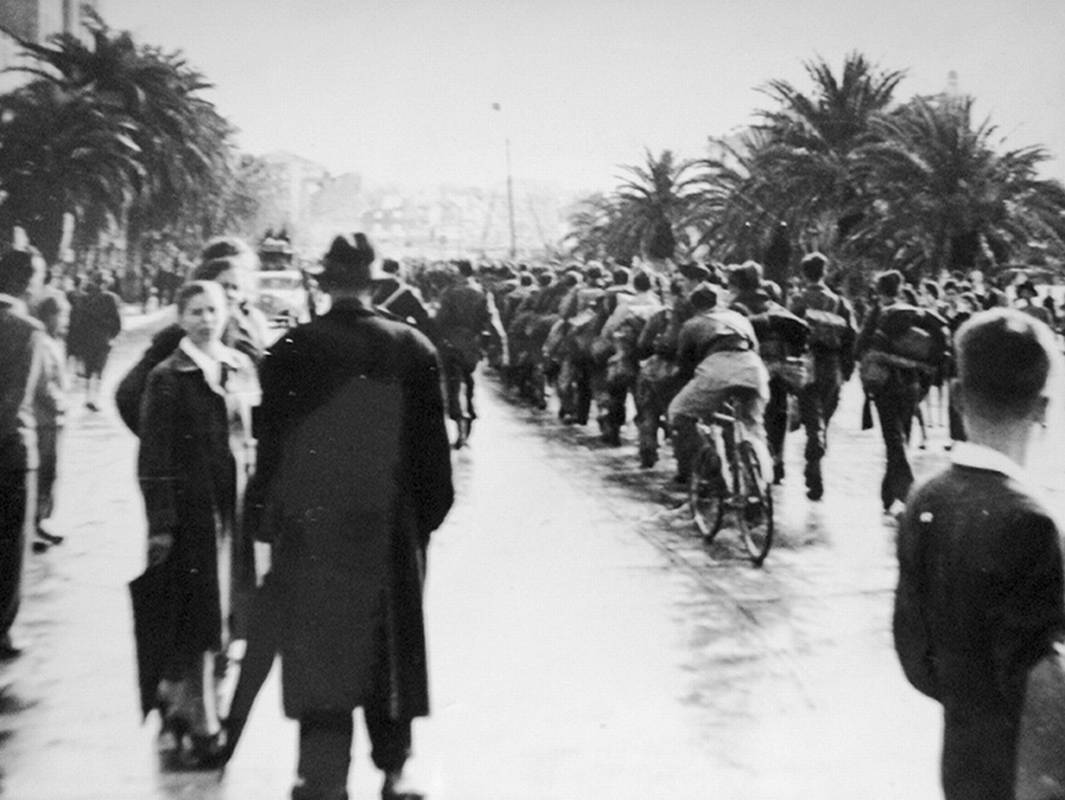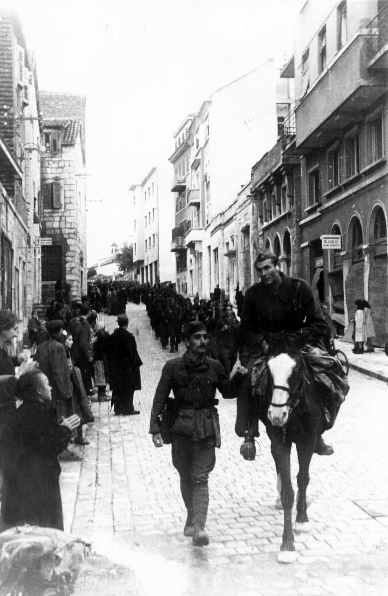 Padala je prava jesenja kišica, oblaci kao da su se vukli nad samim krovovima grada. Nakon obavljenog posla (prihvaćanja predaje domobranskog garnizona) požurio sam prema Solinskoj cesti (Žrtava fašizma danas Domovinskog rata). Još dan nije svanuo… Stigao sam do stare zgrade NOO-a Split kad sam čuo pjesmu iz pravca današnjeg Pravnog fakulteta: »Život, mladost, ne žalimo mi…«, zastao sam i ugledao jednu četu partizana koja je sva pokisla ulazila u grad. Tog momenta su se rastvorile škure stare težačke kuće i na prozoru se pojavila najprije glava jedne starije žene… Zaplakala je i na sav glas zavikala: »NAŠIIII!«.